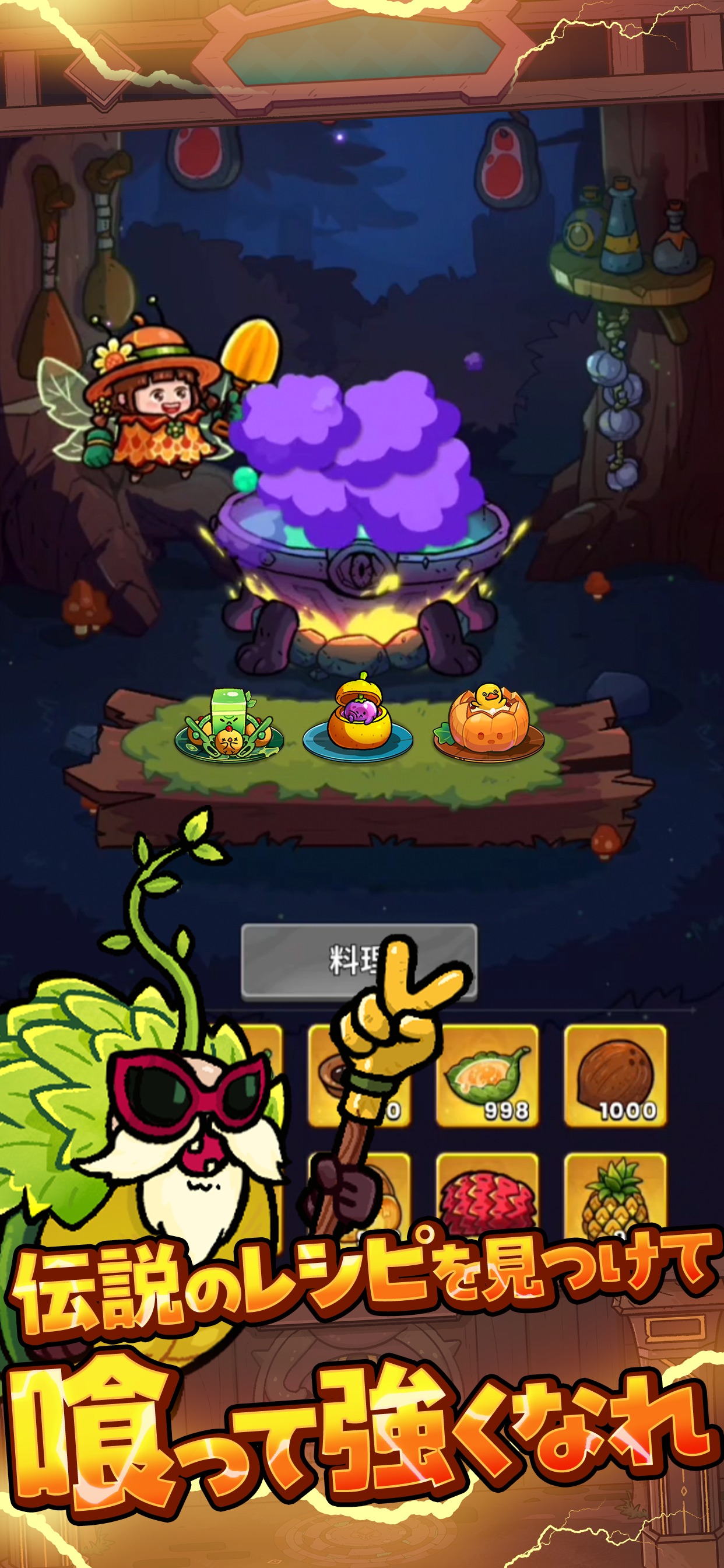 → モンスターを倒して食材を集め、料理でキャラクターを強化!料理の選択は戦闘での勝利を左右します。