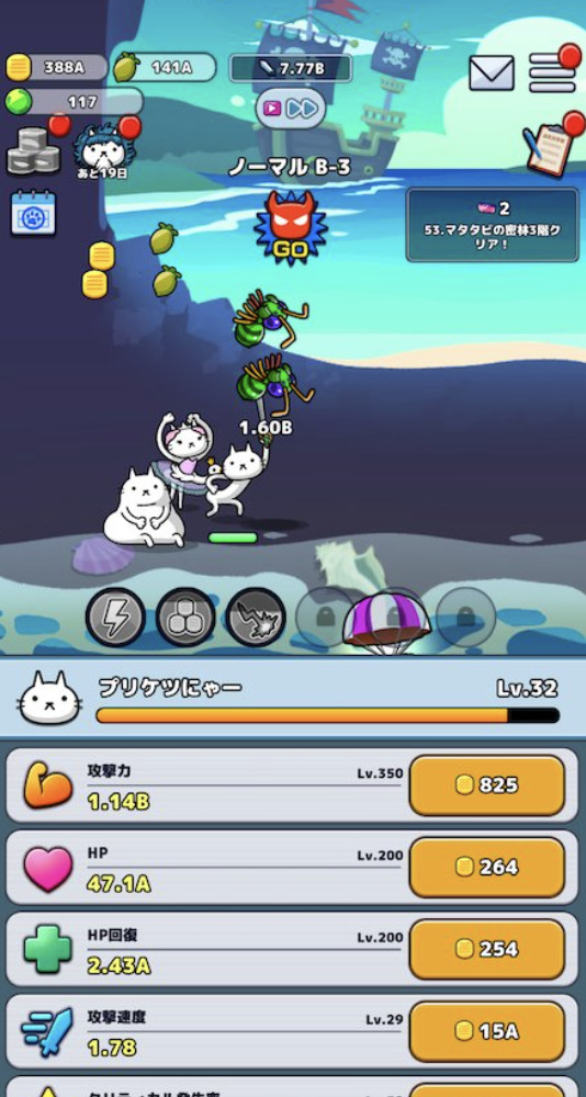 『プリケツにゃー!』の戦闘システムは、オートバトルでありながら、戦略性と多彩な必殺技が魅力です。ネコたちの個性豊かなスキルや必殺技を駆使して、魔物たちを撃退しましょう。