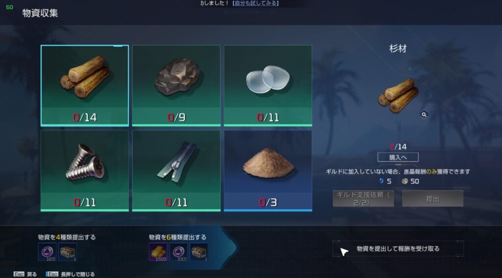 夜間は敵の活動が活発になり、採取中に襲われる危険性が高まります。暗視装置やライトを活用しつつ、安全なエリアで採取を行うようにしましょう。