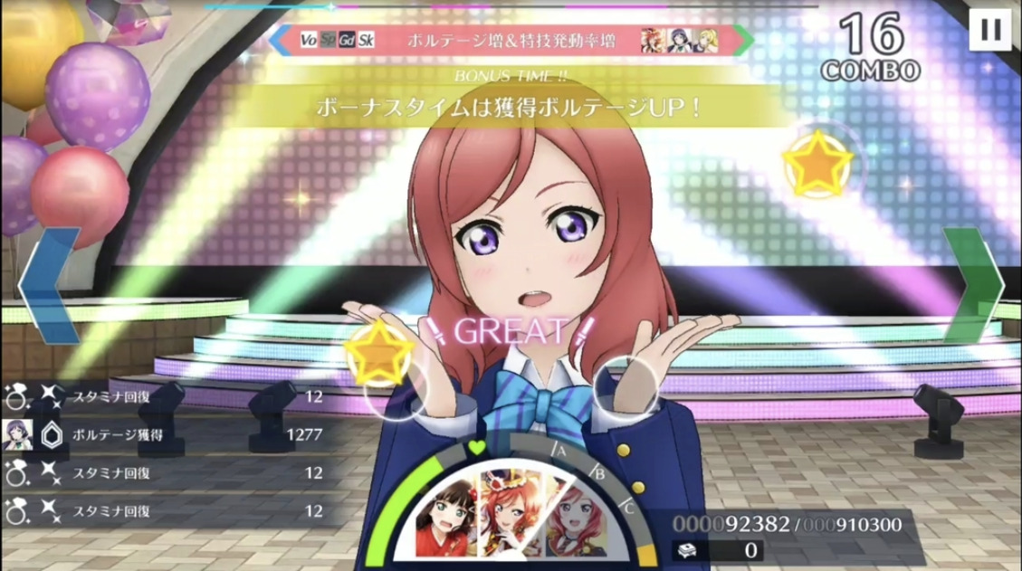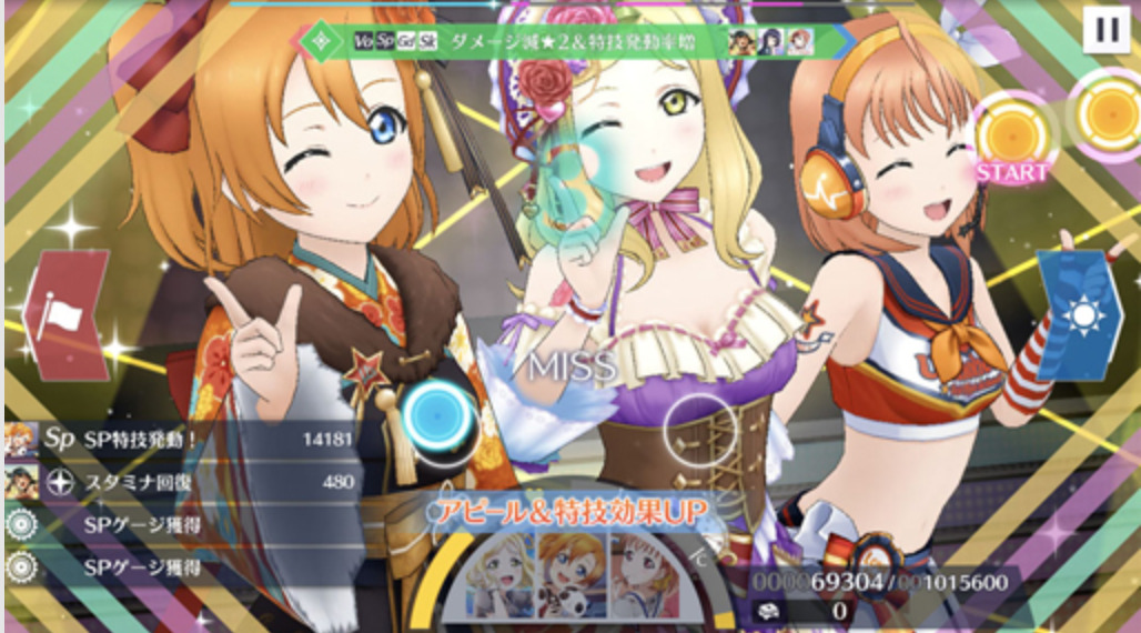 『スクスタ』では、従来のリズムゲームの枠を超えたライブバトルシステムを採用しており、戦略的な要素が加わっています。通常のリズムゲームとは異なり、プレイヤーはアイドルたちのスキルやステータスを考慮しながら、ライブを成功に導く必要があります。